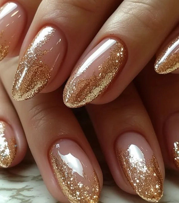 Элементы золота можно добавлять в френч, омбре или геометрию. Даже минимальный золотой штрих усиливает образ и может считаться символом внутреннего изобилия.