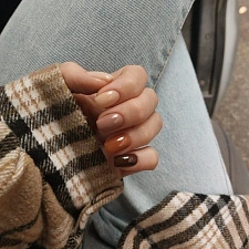 Коричневые оттенки в этом сезоне предлагают палитру от теплого орехового до глубокого шоколадного. Этот цвет вызывает ассоциации с мягкими шерстяными пледами, горячим какао и тихими вечерами у камина. Он придает маникюру мягкость и уют.