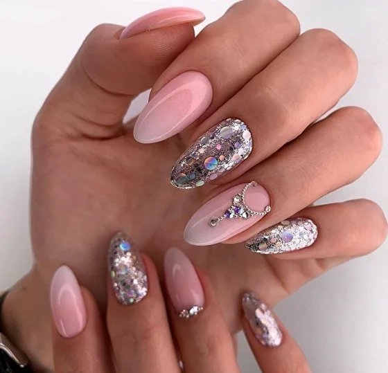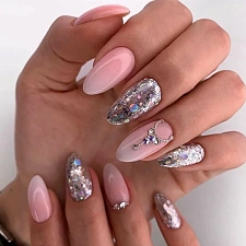 Не бойтесь добавлять блестки и стразы в свой маникюр! Не думайте дважды о том, чтобы добавить блестящие украшения на ногти. Это не обязательно должно быть только серебро или золото. Вы можете использовать различные цвета, такие как синий, сиреневый, зеленый и розовый, которые выглядят не менее потрясающе.