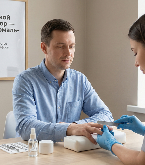 У нормального мастера мужской маникюр — это последовательность шагов, а не магия и не «побалуем ручки». Схема понятная, ее легко проверить по месту.