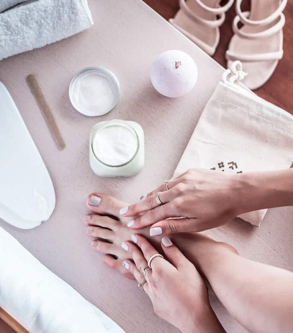 Обертывания и маски: На ноги наносятся питательные маски и обертывания для глубокого увлажнения и питания кожи.