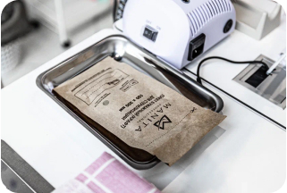 2. Щадящий метод: Подходит для людей с нежной кожей и тонкими ногтями. В процессе мастер использует только специальные средства для размягчения, а не обрезает кутикулу, что делает процедуру безболезненной и мягкой.